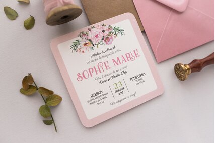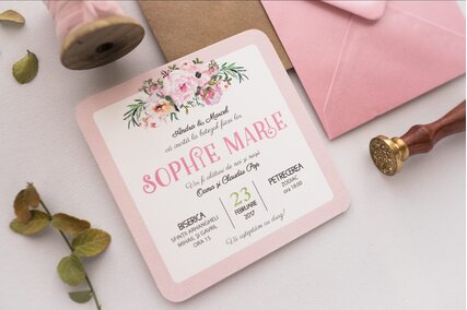 Fetita ta merita sa fie o printesa. Rasfat-o cu o invitatie unica de botez personalizata. Invitatiile de botez pentru fetite contin modele cu fotografii, ilustratii si flori delicate.